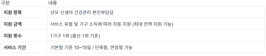 • 서비스는 지정된 산모도우미 기관을 통해 제공됨