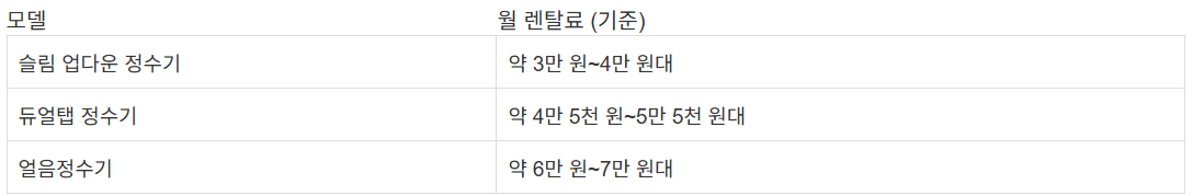 LG 퓨리케어 정수기 렌탈비용 (참고)