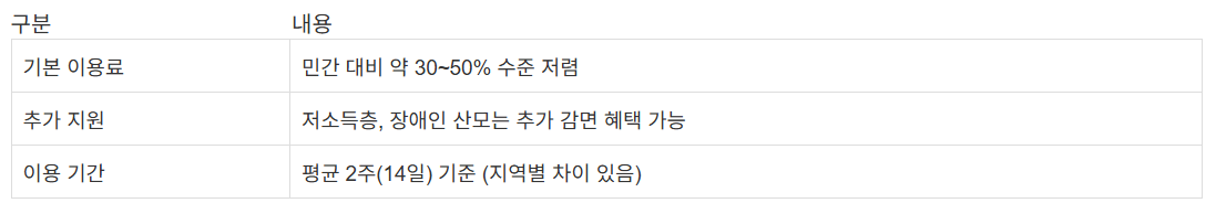 공공 산후조리원 서비스 내용