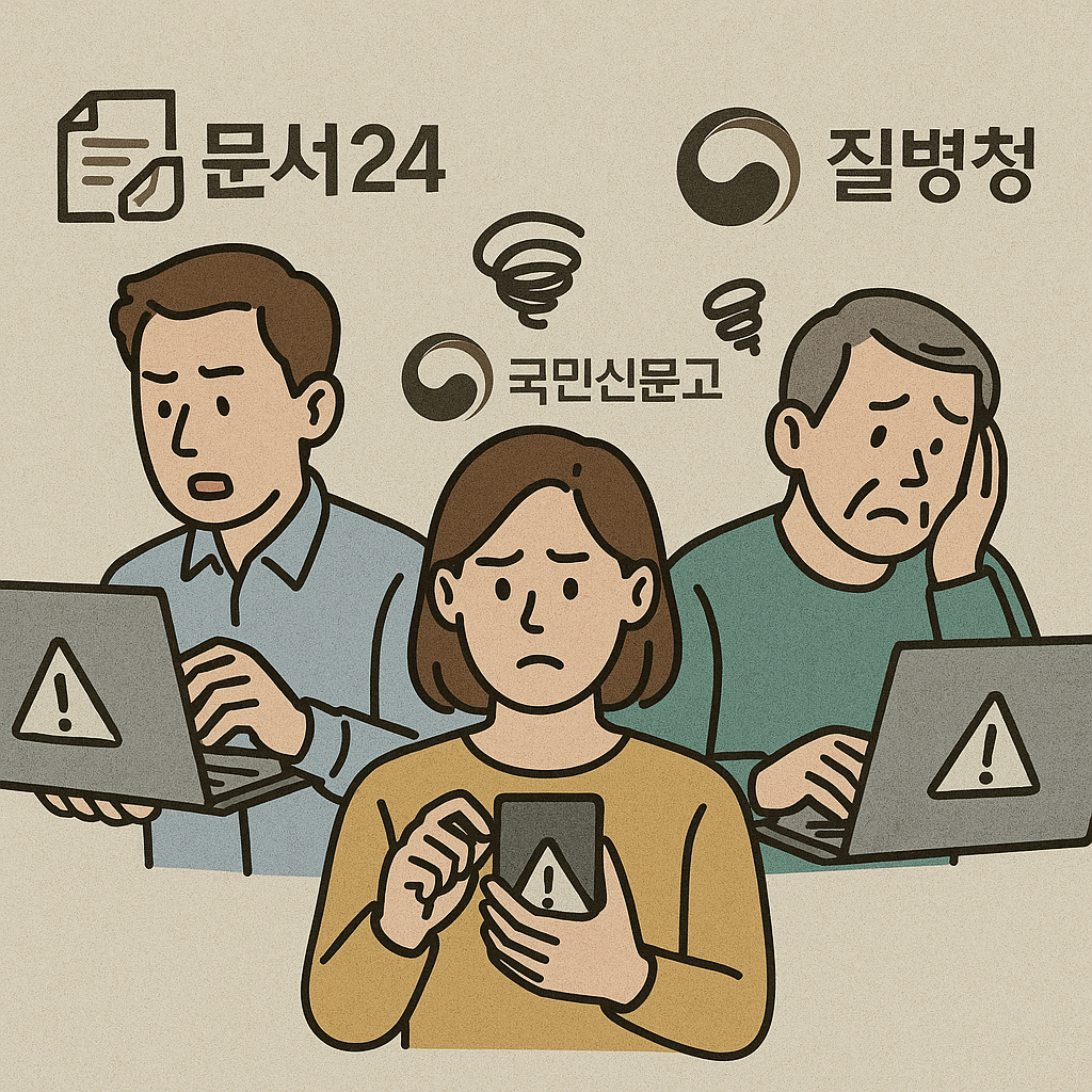 ![[긴급] 문서24·국민신문고·질병청 홈페이지 먹통! 정부 시스템 마비 사태 정리](https://blog.kakaocdn.net/dna/uLWVg/btsQRzx5NVK/AAAAAAAAAAAAAAAAAAAAANL1fMuMHh3EJSpbshljT9WENbiC5ApwidCjHyyFOdf6/img.png?credential=yqXZFxpELC7KVnFOS48ylbz2pIh7yKj8&expires=1777561199&allow_ip=&allow_referer=&signature=VCbBCTf8SpKTvANdXd%2F5qCQzEf0%3D)