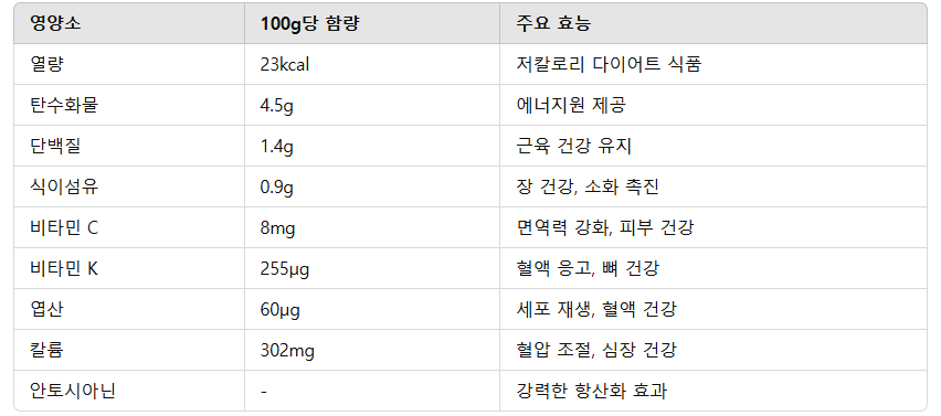 비타민 K가 풍부하여 뼈 건강과 골밀도 유지에 도움을 줍니다.