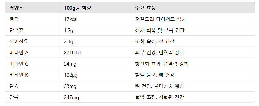 비타민 K와 칼슘이 포함되어 있어 뼈를 튼튼하게 하고 혈액 응고를 조절하는 역할을 합니다.